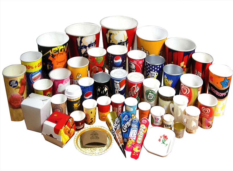 We offer eco friendly cups and glasses made out of thermal paper. These cups / glasses can hold cold as well as hot beverages. Other items made out of paper can be used for, "popcorns", etc.